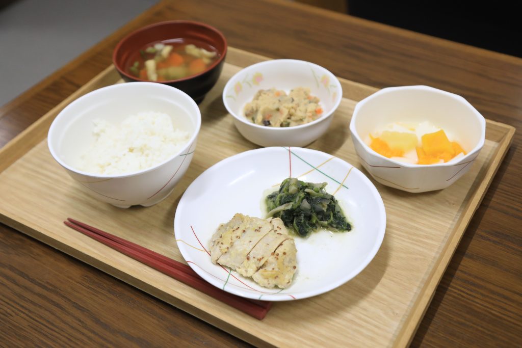 1/14 本日のメニュー 2026年1月16日(金) 朝食 ジャムパン スクランブルエッグ コンソメスープ 牛乳 昼食 ごはん 鶏肉のマスタード焼き なめらかうの花 杏仁フルーツ けんちん汁 夕食 ごはん 家常豆腐 大根サラダ お漬物 赤だし汁 ← トップページに戻る