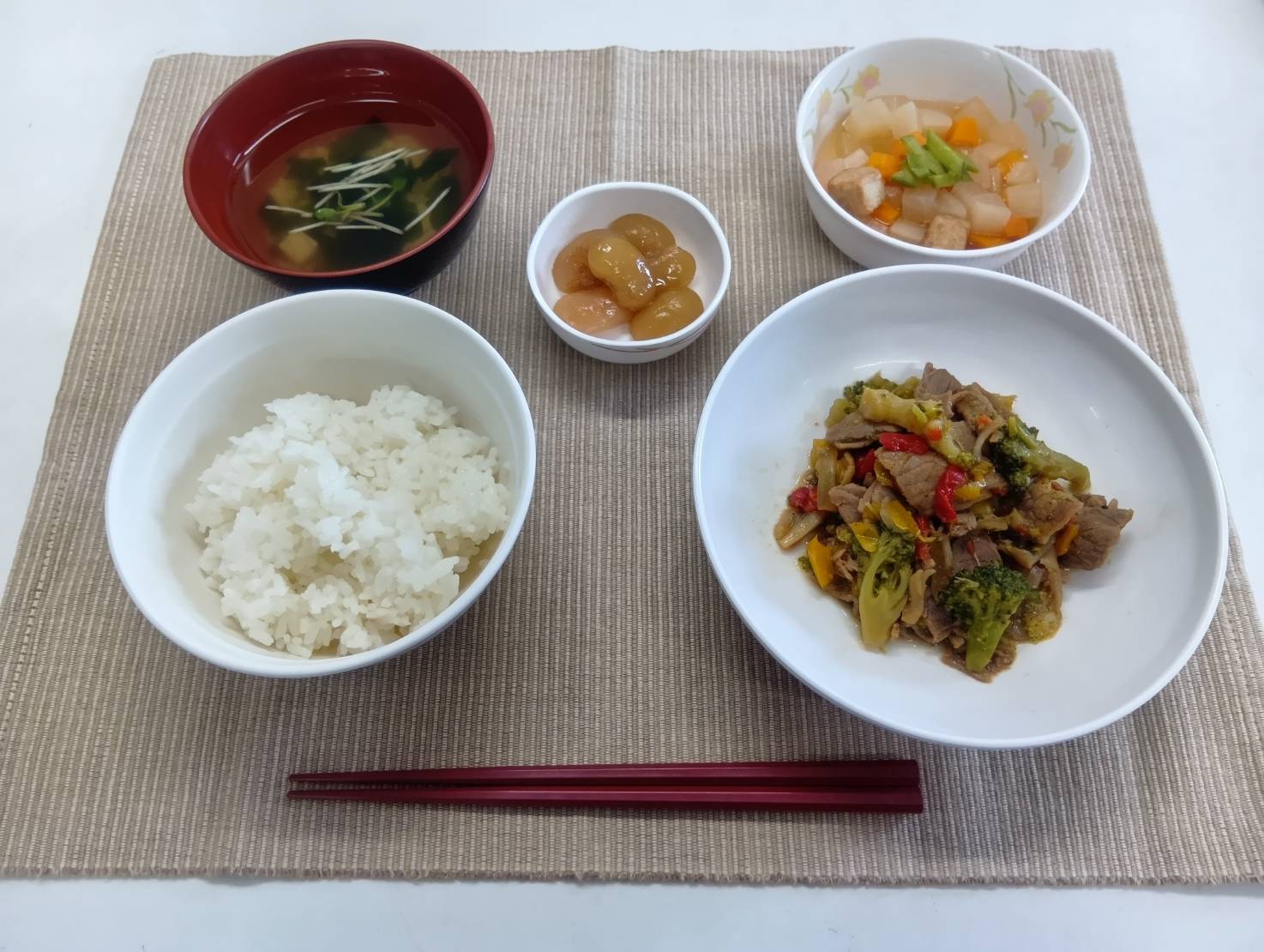 10/2 本日のメニュー 2025年10月3日(金) 朝食 ごはん 茄子のそぼろ煮 みそ汁 ふりかけ 牛乳 昼食 ごはん 牛肉とブロッコリーのカキ油炒め 大根の煮物 白花豆 わかめスープ 夕食 ごはん 魚の生姜煮 蒸ししゅうまい 杏仁フルーツ みそ汁 ← トップページに戻る