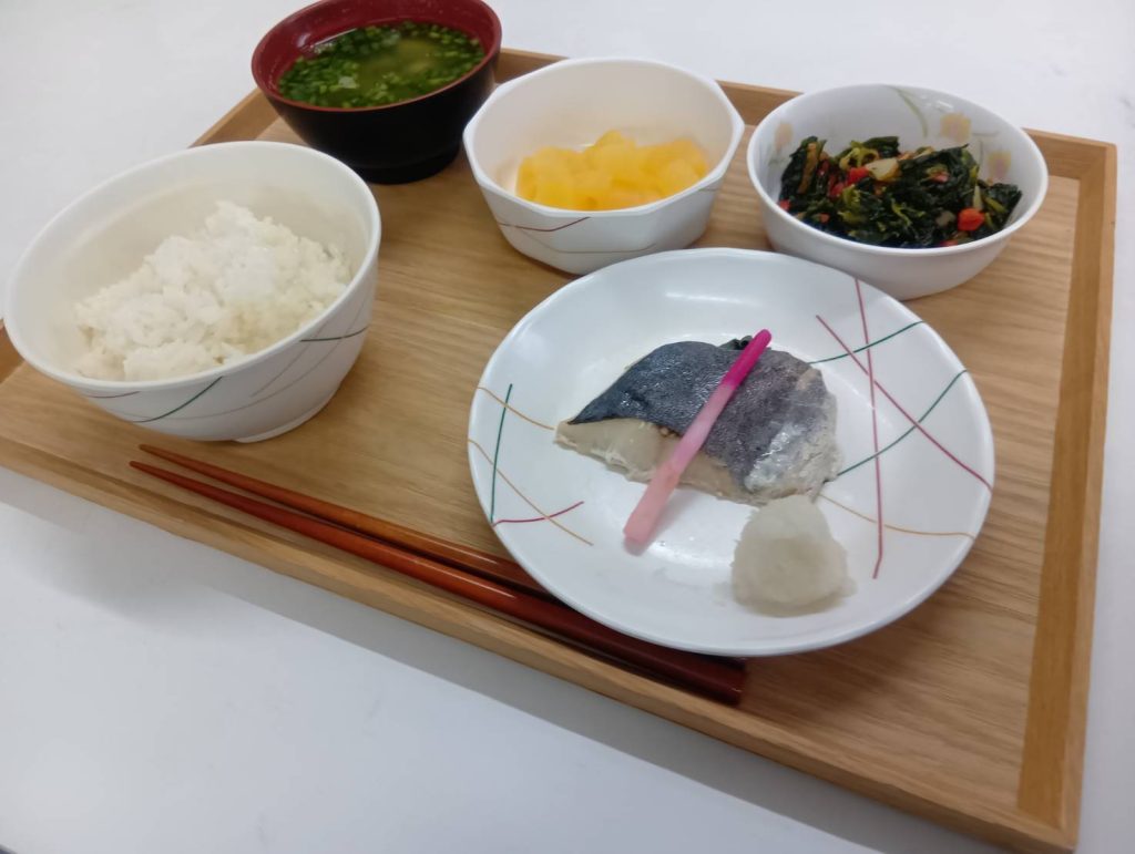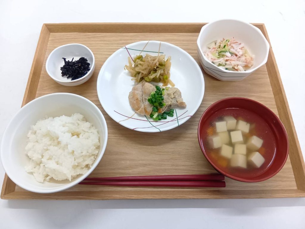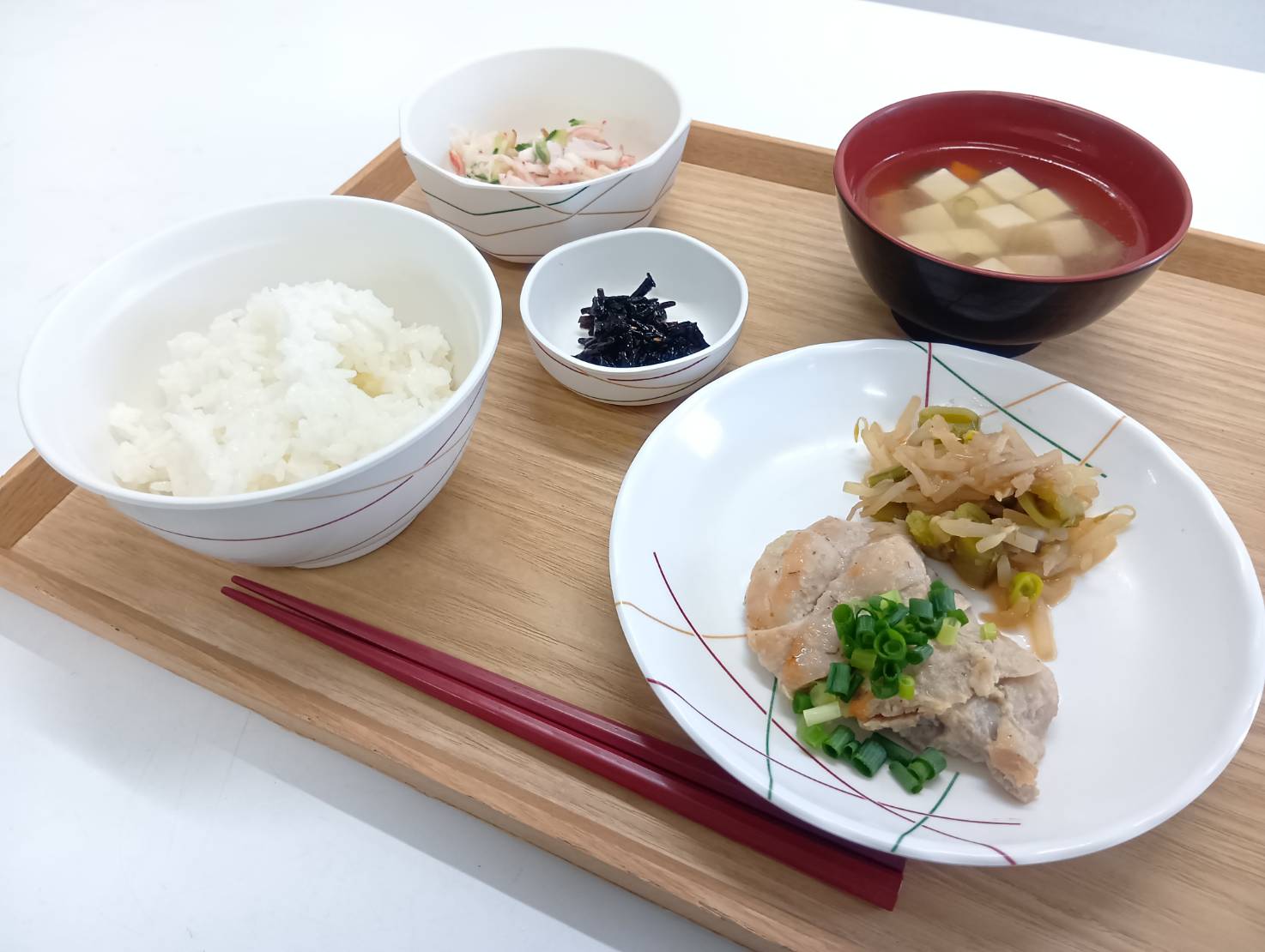 10/4 本日のメニュー 2025年10月6日(月) 朝食 ごはん 大豆と豚のトマト煮 みそ汁 ふりかけ 牛乳 昼食 ごはん 鶏のみそ焼き 山芋とリンゴの酢の物 しそ昆布 けんちん汁 夕食 ごはん 蒸し魚のおろし醤油添え ほうれん草と揚げの炒め物 りんご みそ汁 ← トップページに戻る