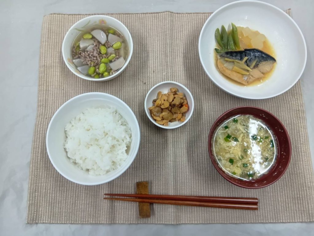 11/13 本日のメニュー 2025年11月17日(月) 朝食 ごはん カリフラワーの中華炒め みそ汁 ゆずみそ 牛乳 昼食 ごはん 鶏のから揚げ香味ダレ 切干大根の旨煮 りんご 赤だし汁 夕食 ごはん サバの味噌煮 さといものそぼろあん やさい豆 たまごスープ ← トップページに戻る