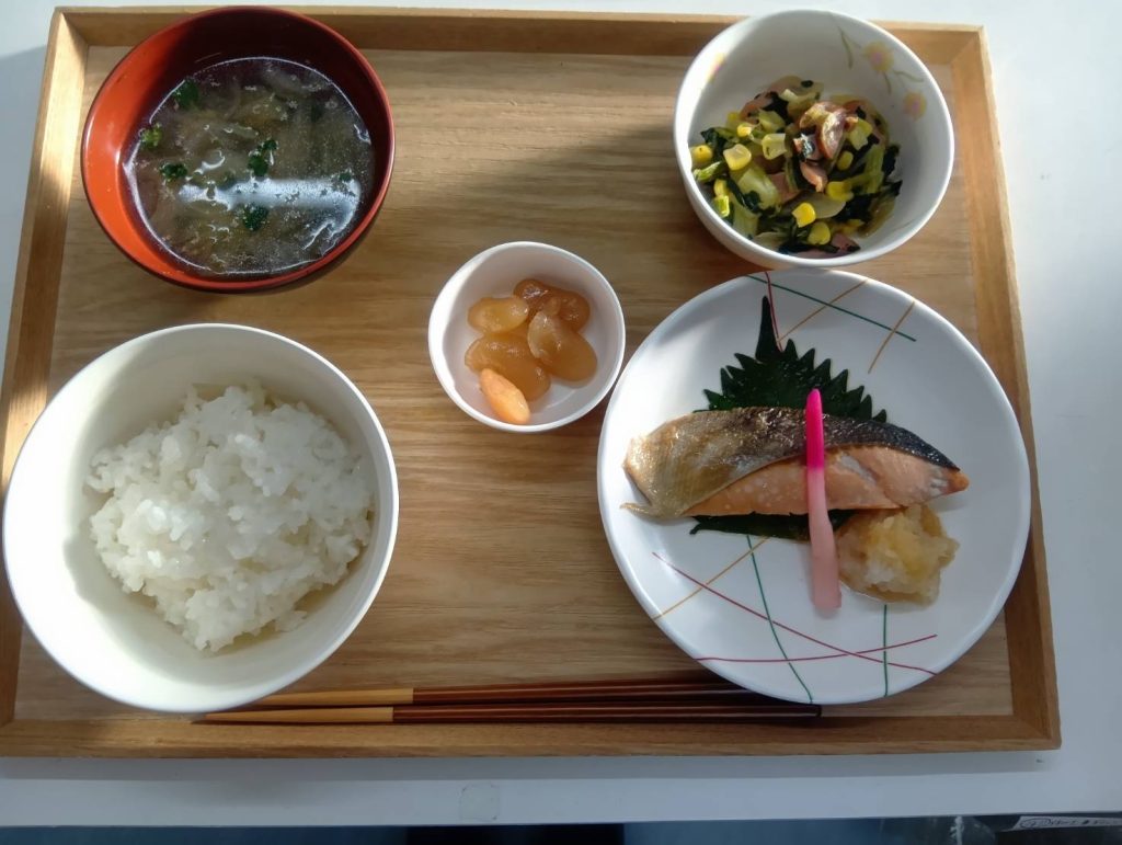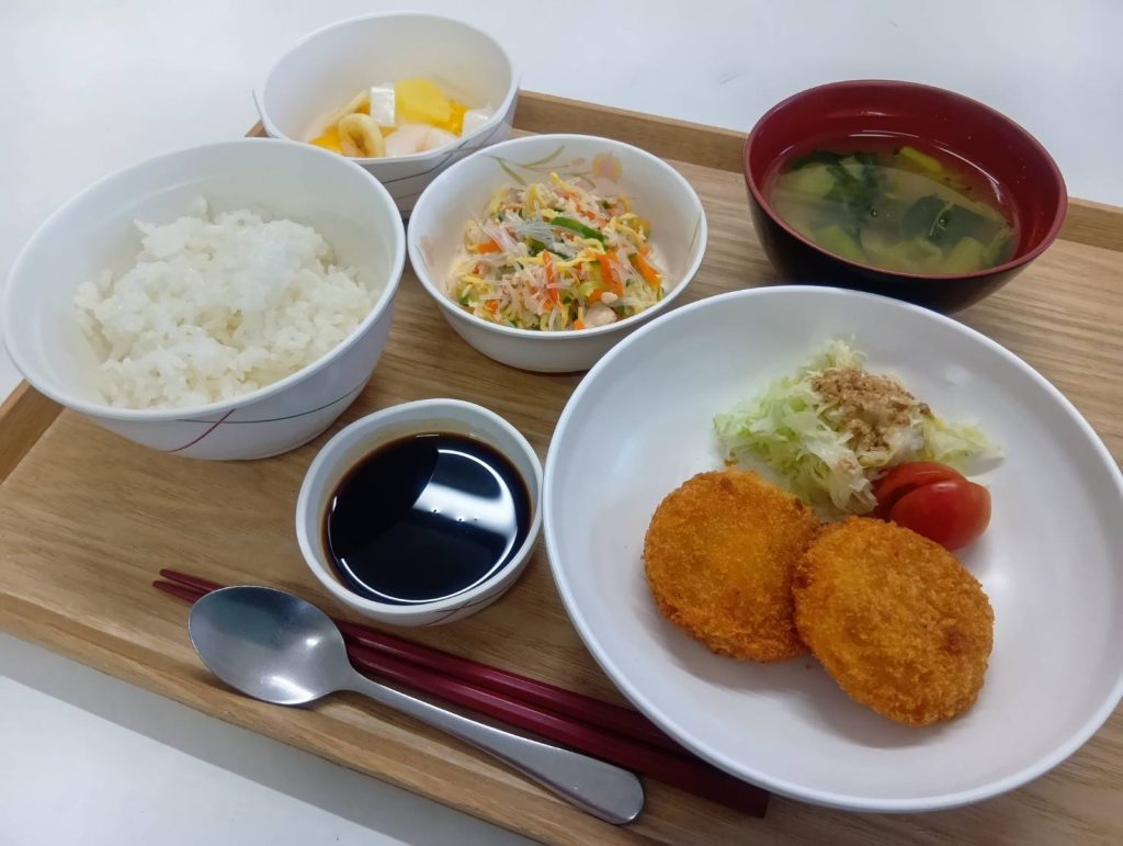 11/23 本日のメニュー 2025年11月26日(水) 朝食 ジャムパン キャベツとベーコンのソテー かぼちゃのポタージュ 牛乳 昼食 ごはん コロッケ バンサンスウ 杏仁フルーツ みそ汁 夕食 ごはん 鮭の塩焼き チンゲン菜のソテー 白花豆 あさりと白菜のスープ ← トップページに戻る