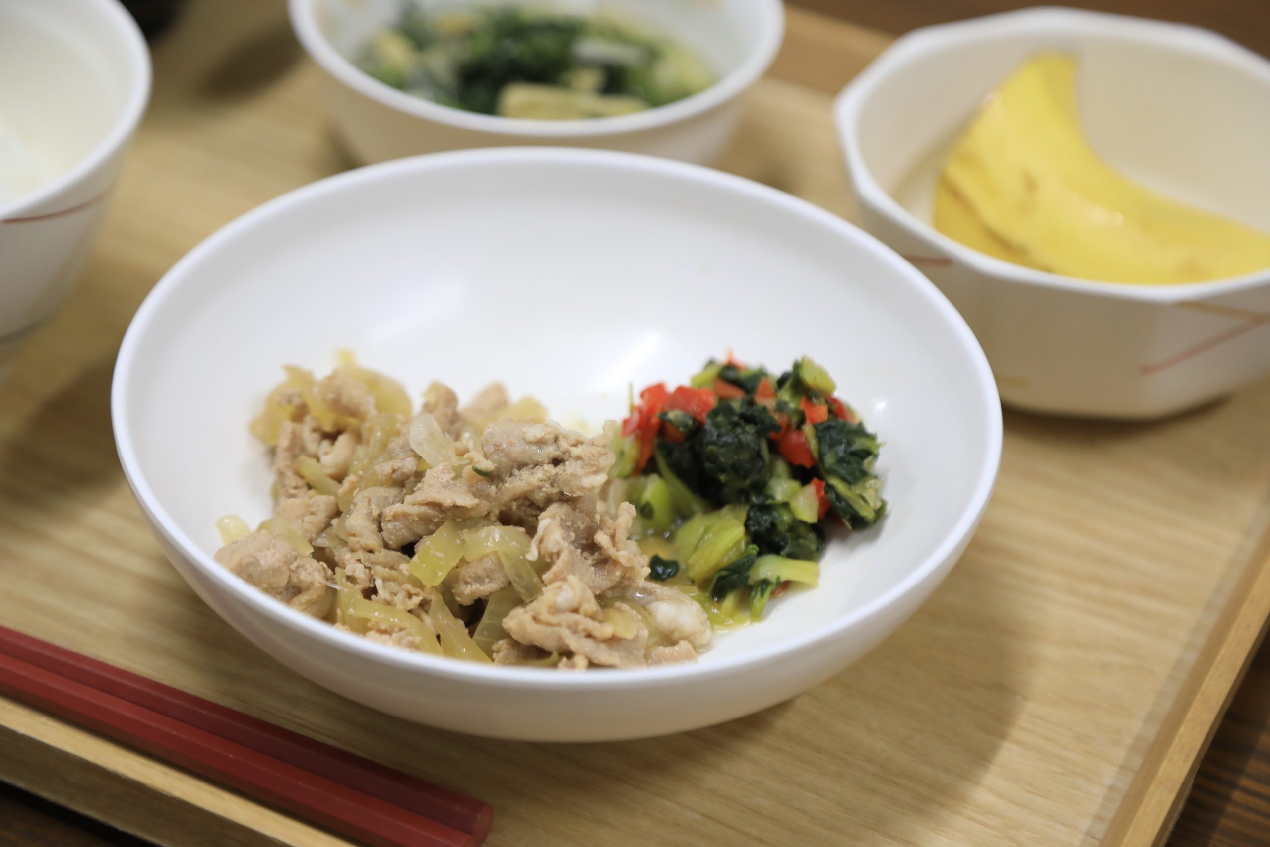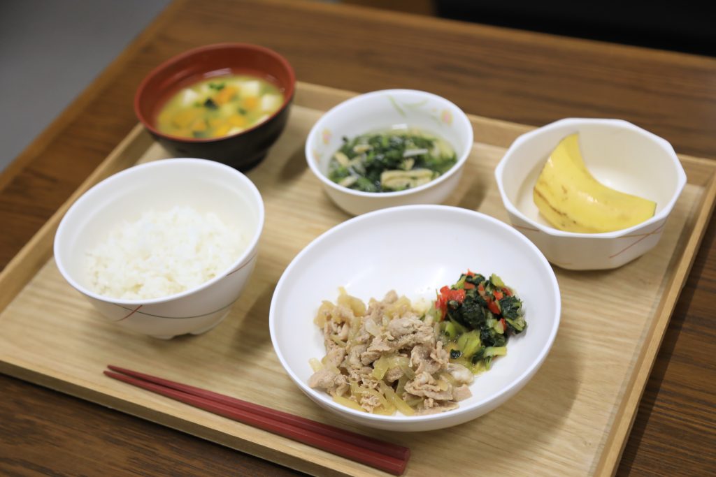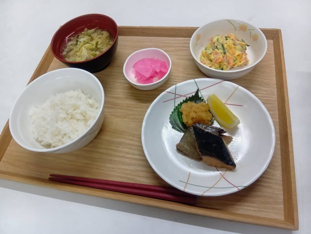 12/1 本日のメニュー 2025年12月3日(水) 朝食 ごはん 大根と根菜の煮物 みそ汁 たいみそ 牛乳 昼食 ごはん 豚肉の生姜炒め 春菊の煮物 バナナ みそ汁 夕食 ごはん 鯵の焼き浸し さつまいものサラダ お漬物 かきたま汁 ← トップページに戻る