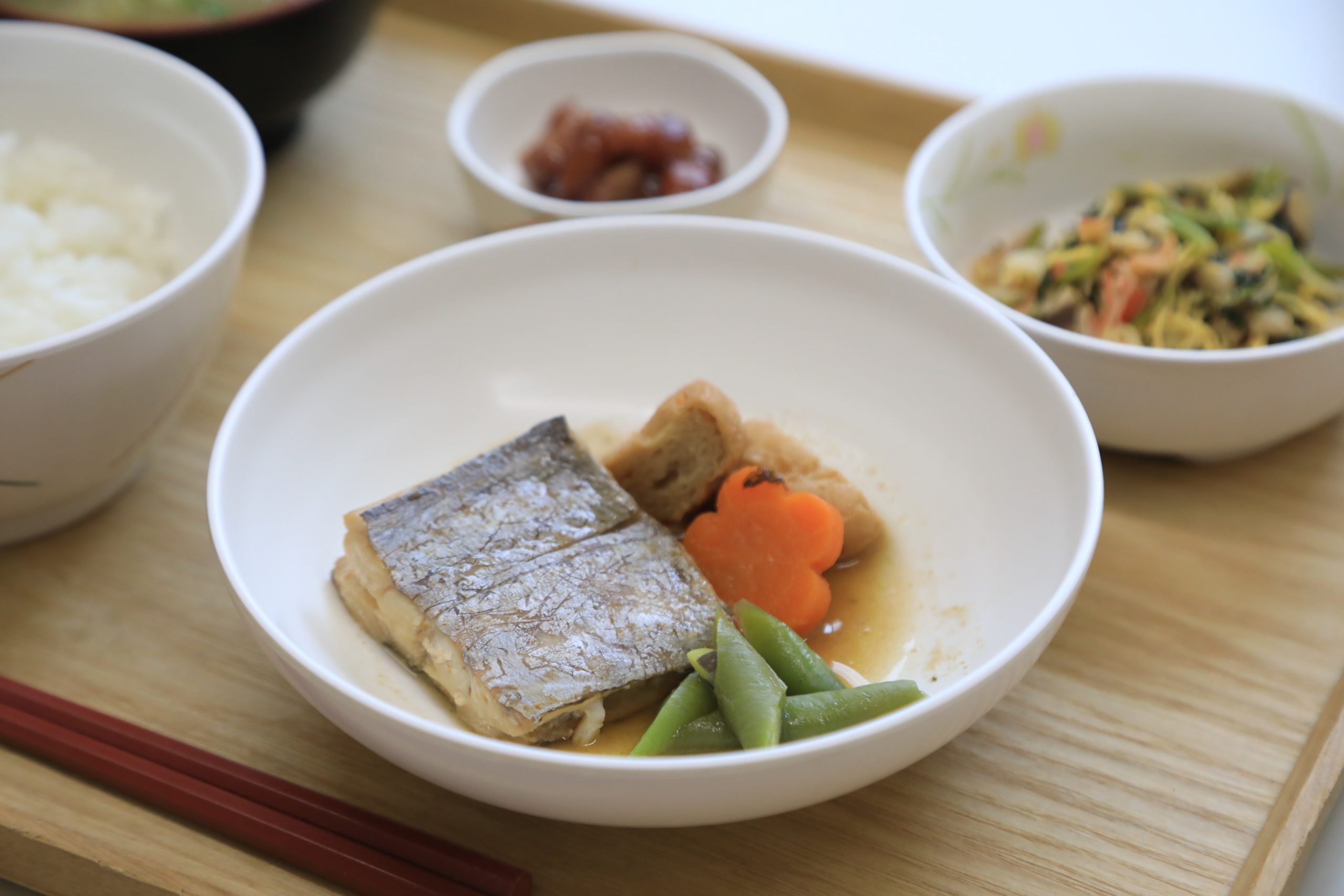 12/2 本日のメニュー 2025年12月3日(水) 朝食 ごはん 大根のきんぴら風 みそ汁 ふりかけ 牛乳 昼食 ごはん 太刀魚の梅煮 レモン酢和え 金時豆 もやしのスープ 夕食 ごはん 擬製豆腐 いわしの煮物 白桃 みそ汁 ← トップページに戻る