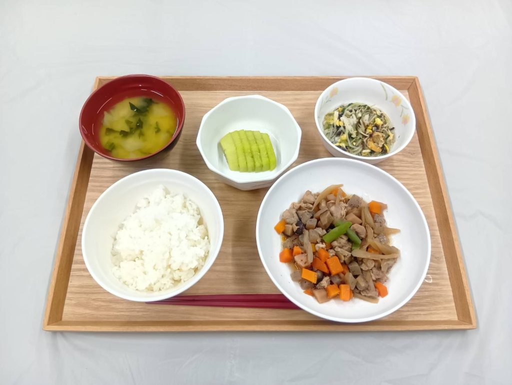 12/22 本日のメニュー 2025年12月24日(水) 朝食 ごはん なめらかうの花 みそ汁 ふりかけ 牛乳 昼食 ごはん 赤魚の甘露煮 アスパラとキノコのソテー お漬物 かきたま汁 夕食 ごはん 炒り鶏 磯和え キウイ みそ汁 ← トップページに戻る