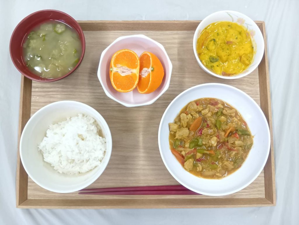 2/28 本日のメニュー 2026年3月2日(月) 朝食 ごはん 山菜の炒め物 みそ汁 ふりかけ 牛乳 昼食 ごはん 鶏肉のカレー炒め かぼちゃのミルク煮 みかん みそ汁 夕食 ごはん 魚のお好み焼き風 豆腐のきのこあん お漬物 みそ汁 ← トップページに戻る