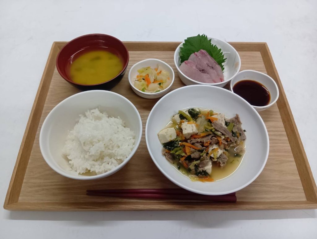 2/5 本日のメニュー 2026年2月6日(金) 朝食 ごはん とうがんのくず煮 みそ汁 金山寺みそ 牛乳 昼食 ごはん 魚の南部焼き おひたし バナナ 呉汁 夕食 ごはん 肉豆腐 お刺身 キャベツの彩り酢物 みそ汁 ← トップページに戻る