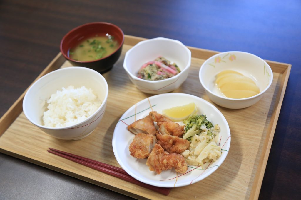 9/16 本日のメニュー 2025年9月19日(金) 朝食 ごはん 豚肉の生姜煮 みそ汁 のり佃煮 牛乳 昼食 ごはん 鶏肉のから揚げ 白菜のしそかつお和え 白桃 みそ汁 夕食 ごはん カレイのパン粉焼き ほうれん草の竹輪炒め お漬物 たまごスープ ← トップページに戻る